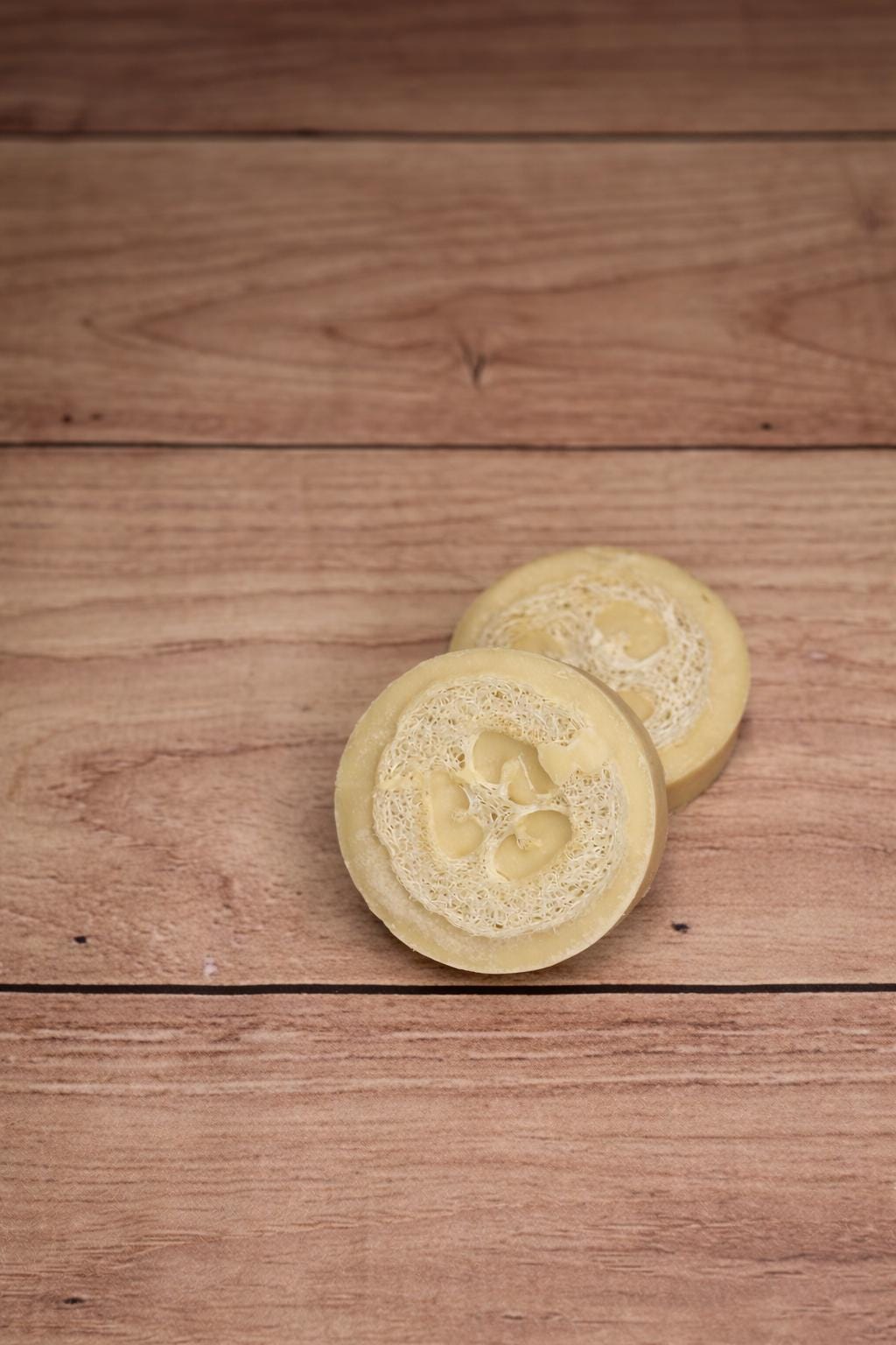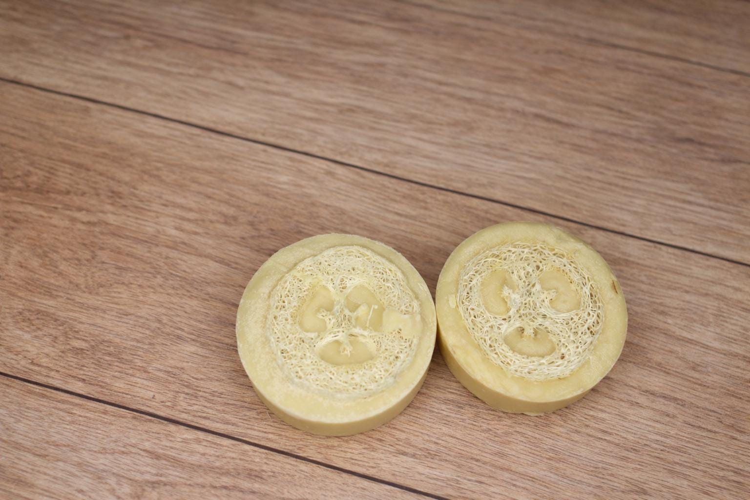 Exfoliating loofah bar made with real honey (honey orange blossom scent).