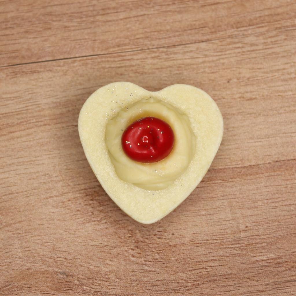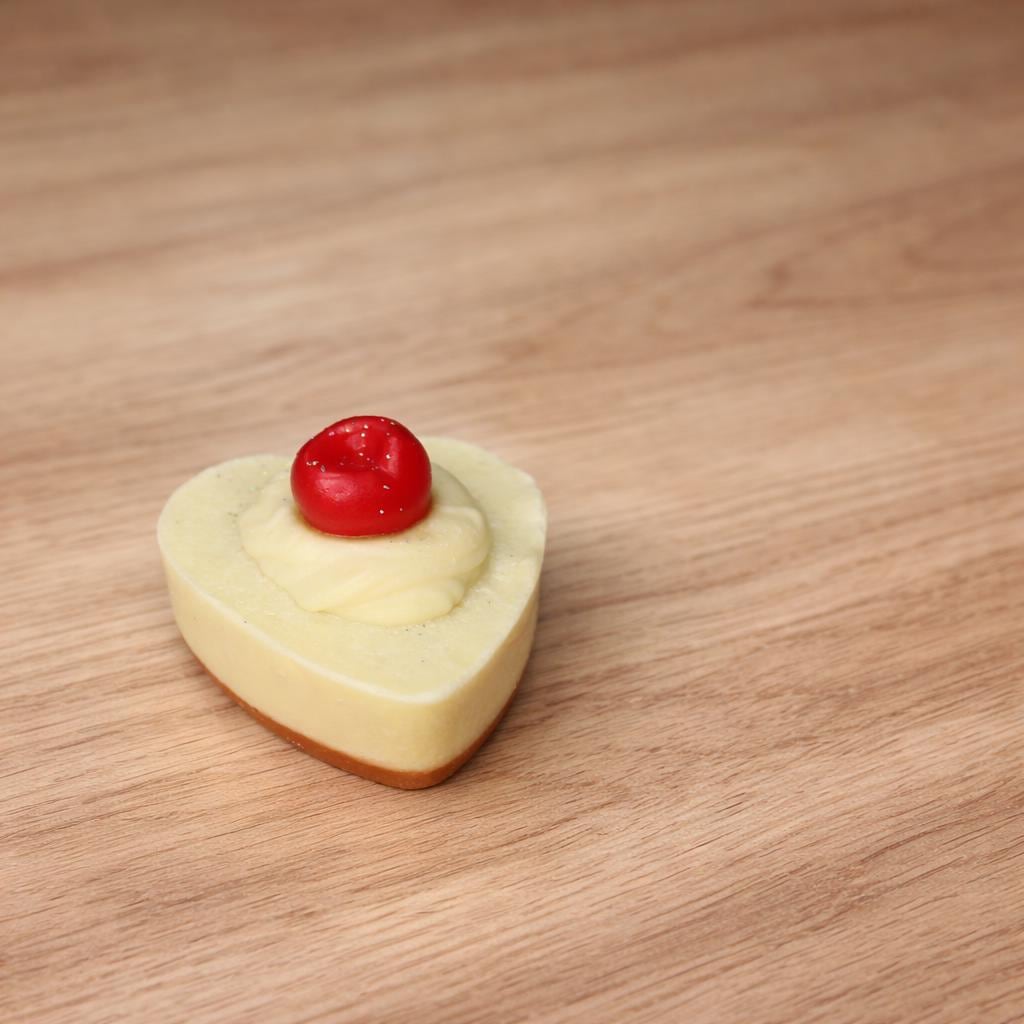 Made with two layers of cold process soap and cold process whipped cream. Added a melted goat milk cherry and bioglitter.