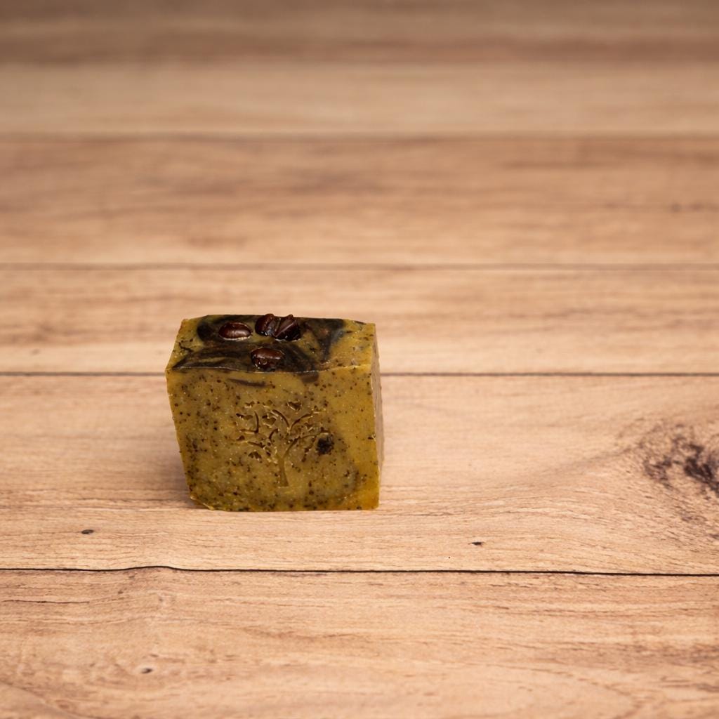 This is a homemade, skin loving soap that I made in my own kitchen with natural and skin-loving ingredients. Coffee grounds provide a natural exfoliation.